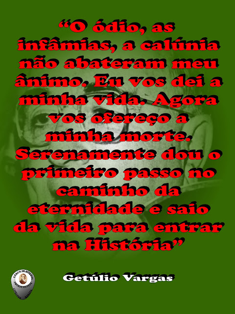 “O ódio, as infâmias, a calúnia não abateram meu ânimo. Eu vos dei a minha vida. Agora vos ofereço a minha morte. Serenamente dou o primeiro passo no caminho da eternidade e saio da vida para entrar na História”